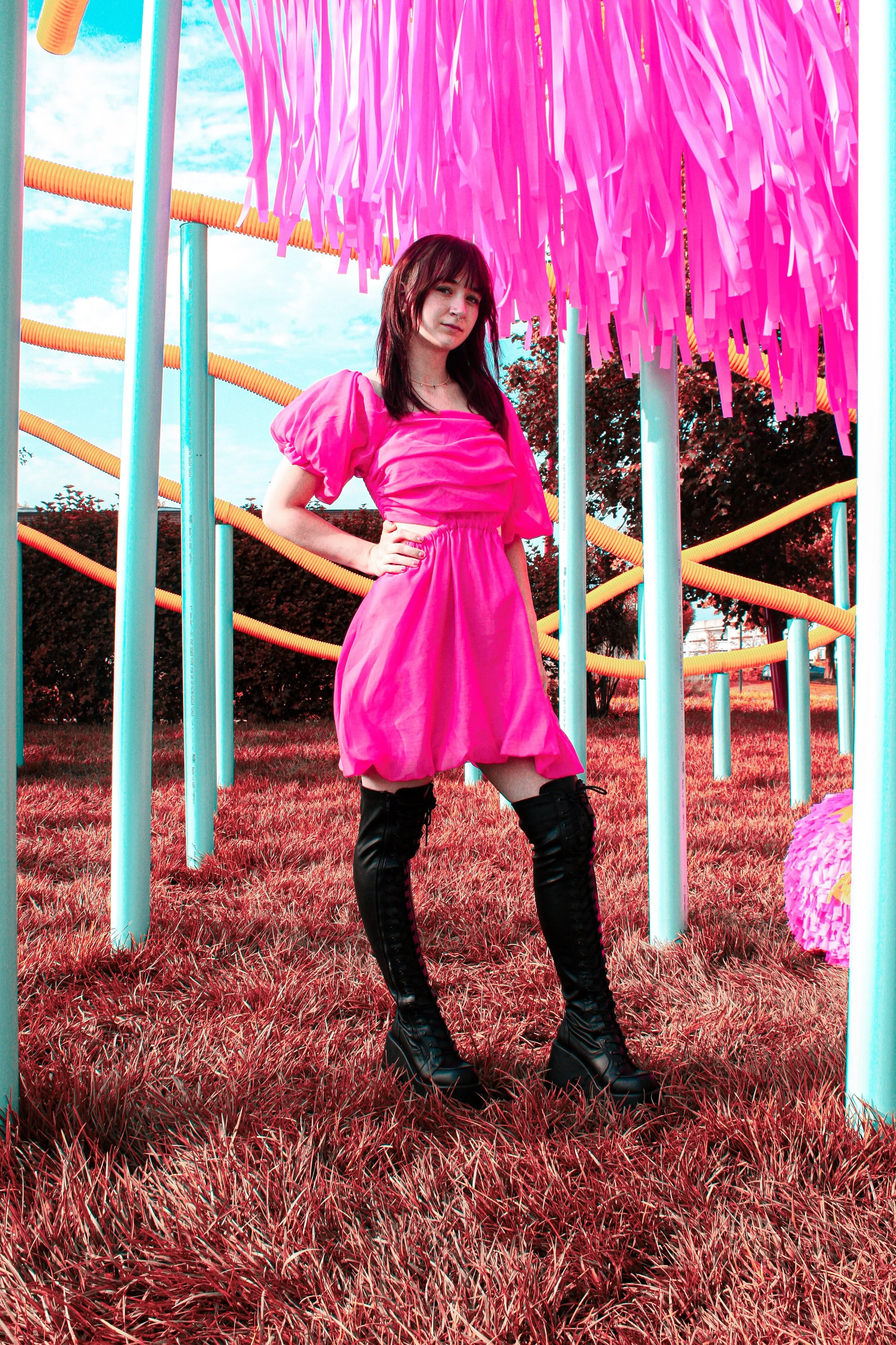 As luck would have it, Exhibit Columbus was putting up their exhibits that weekend, so we seized the opportunity and incorporated this incredible pink wall into some of the shots. I knew something really creative was going to come out of this shoot and just didn’t know what. This pink wall created that opportunity.